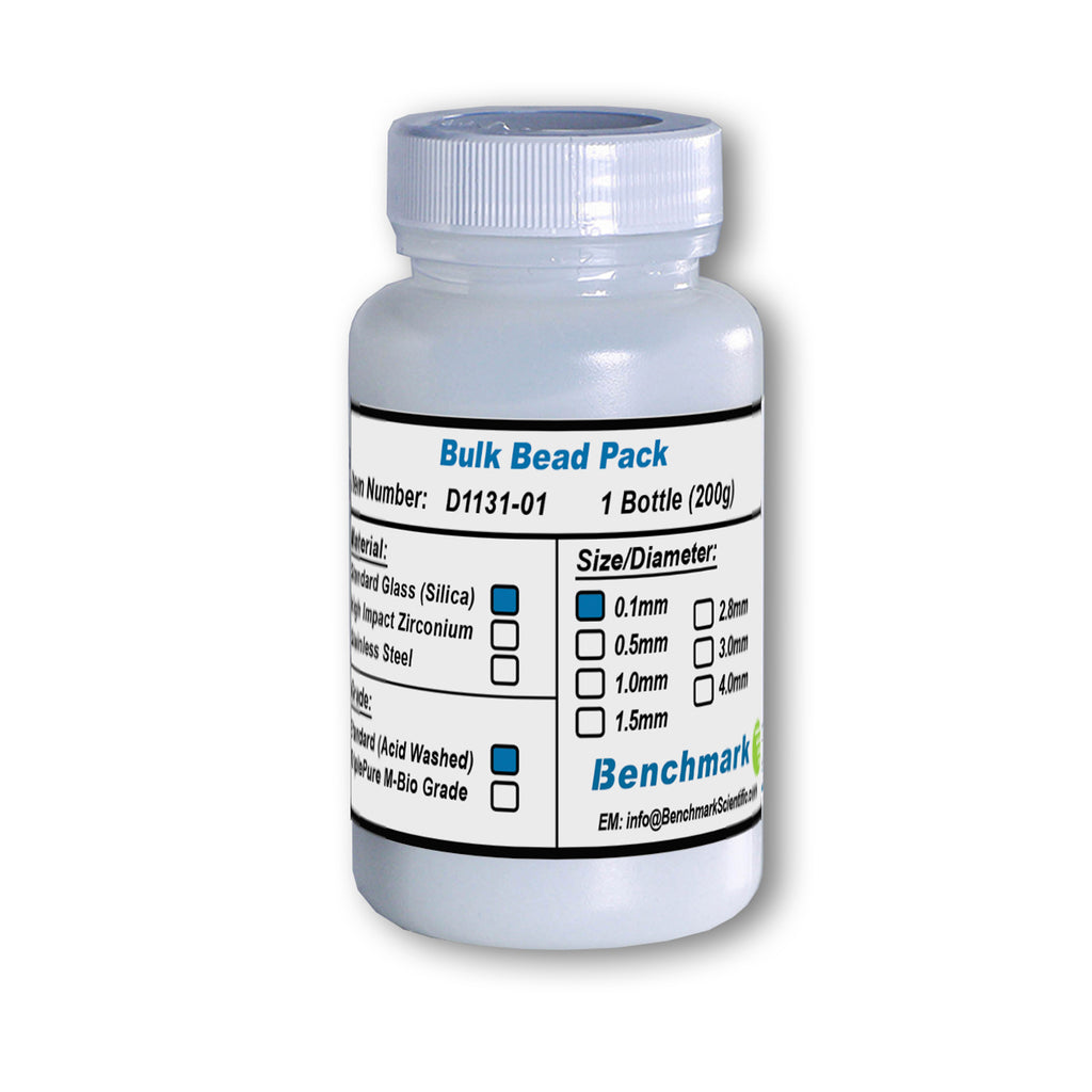 Benchmark Scientific® 0.1mm Acid Washed Silica (Glass) Beads, 200g, D1131-01