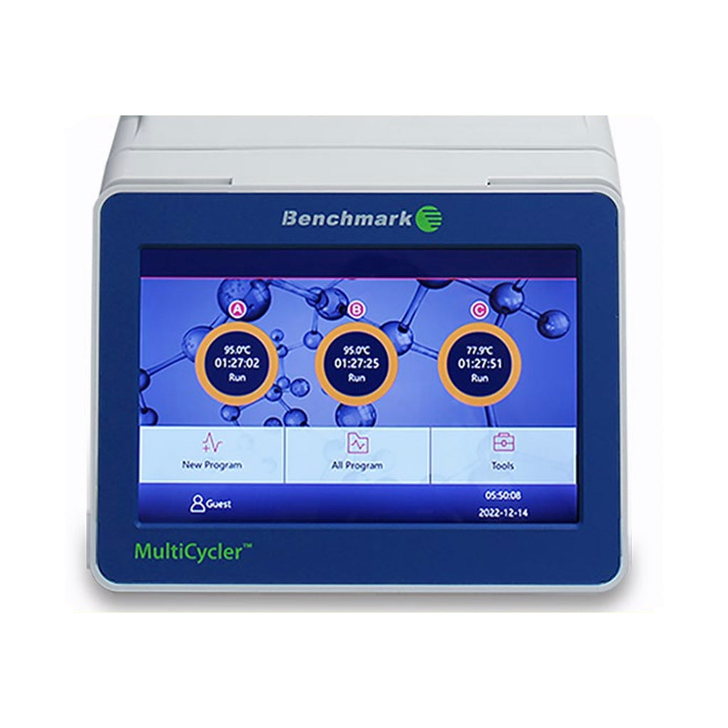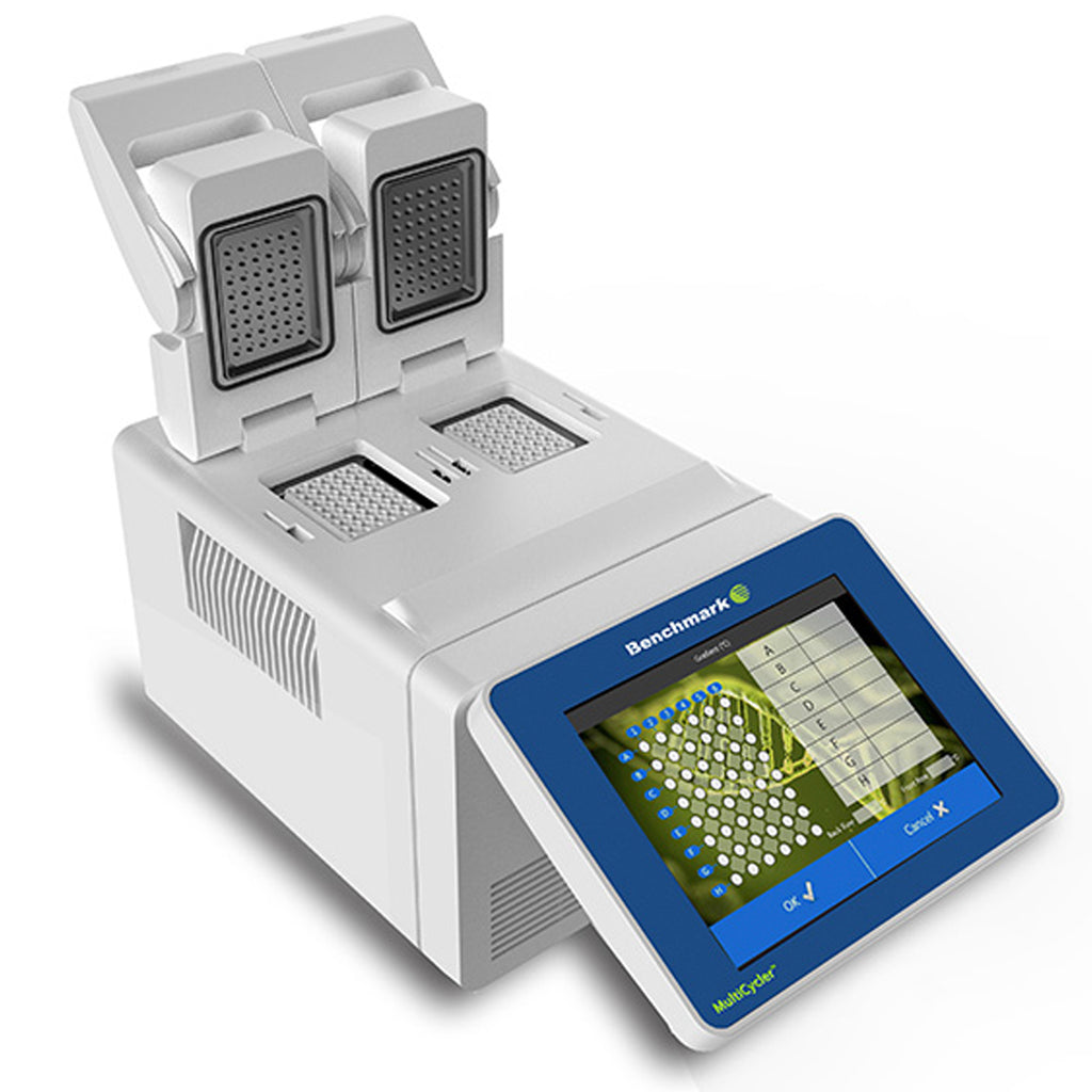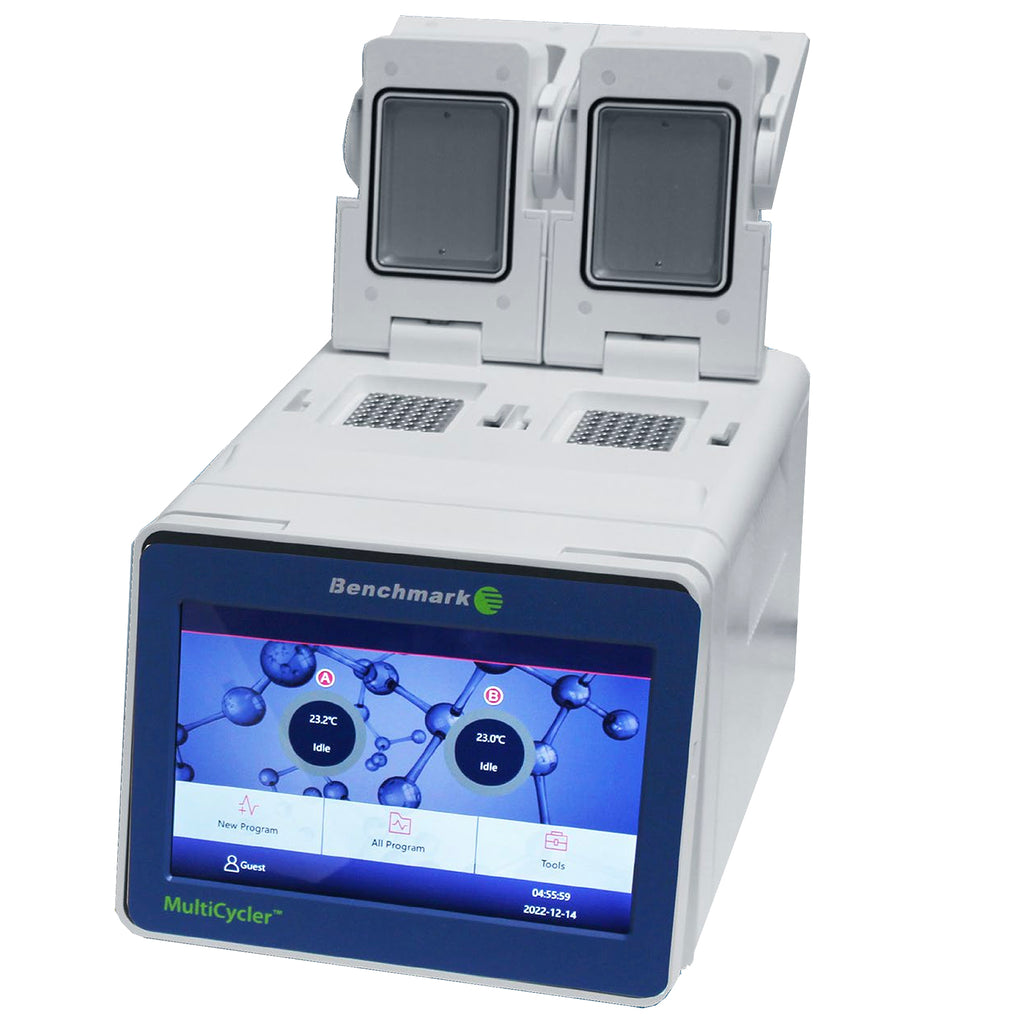 Benchmark’s MultiCycler™ Thermal Cyclers deliver versatile PCR performance with dual or triple independent blocks. Fast cycling, gradient capability, and precise temperature control via Peltier units ensure reproducible results. A large 10” touch screen with program wizard simplifies setup, while self-adjusting heated lids prevent condensation and evaporation.