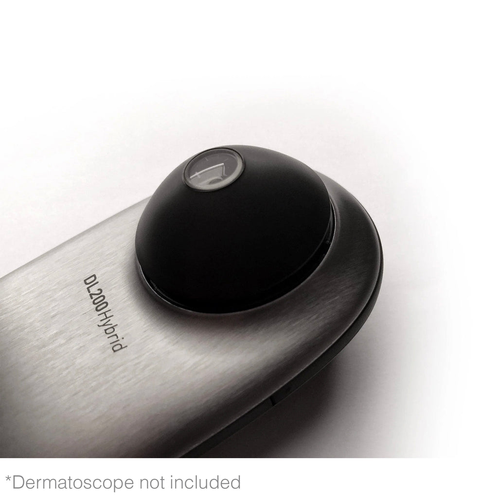 The DL200SCP compact contact plate features a 10 mm diameter, making it ideal for performing contact dermoscopy on concave areas and skin crevices using immersion fluids. It includes a 4x4 mm hairline reticle and is fully compatible with all DermLite® DL200 models.