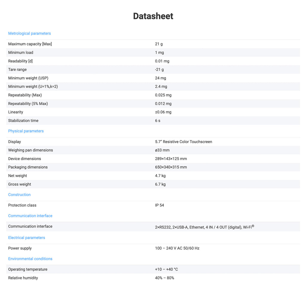 Radwag® MAS 1.21.Y Product Spec. Sheet