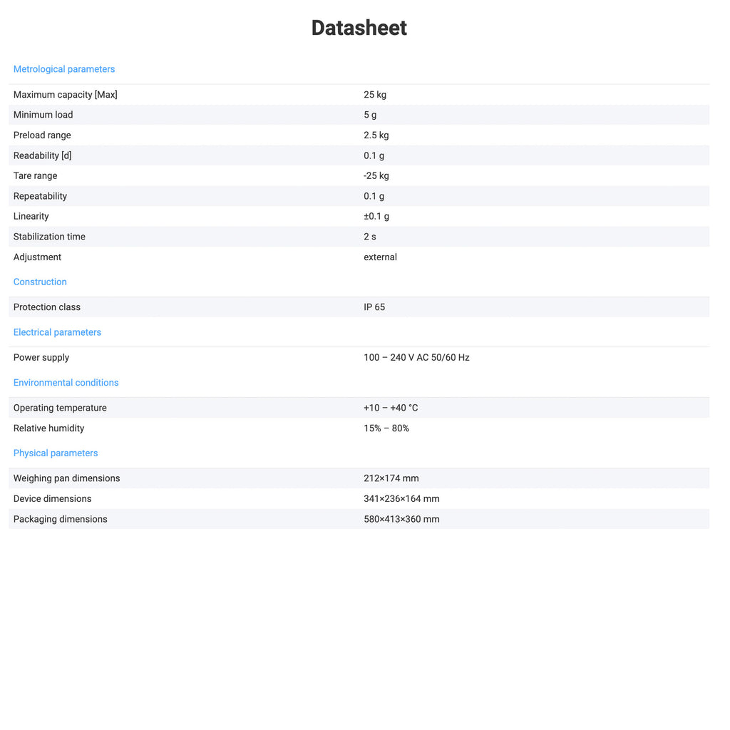 WX-016-0109 MWLH 25 5g 25kg 0.1g IP 65