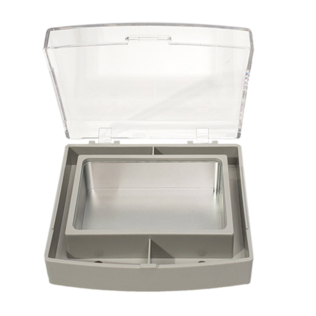• Internal chamber dimensions: approximately 4" × 2.6" × 1"