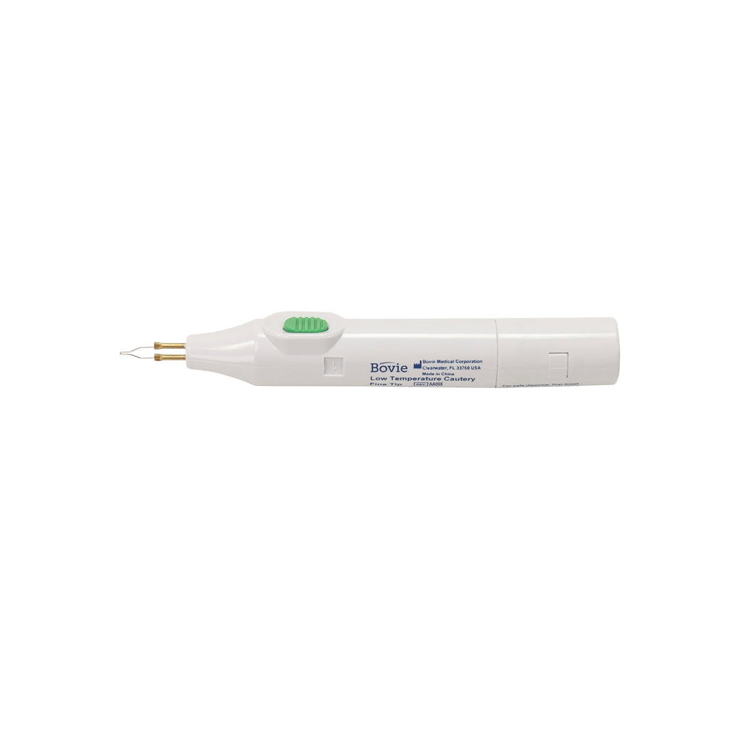 The Bovie AA00X Battery Operated Disposable Low Temperature Fine Tip Cautery operates at 1300 °F (704 °C) and is individually packaged. Comes in a box/10. Primary applications are pinpoint hemostasis in delicate, oculoplastic, dermal, and minor subcutaneous procedures. Has a 4 year shelf life.