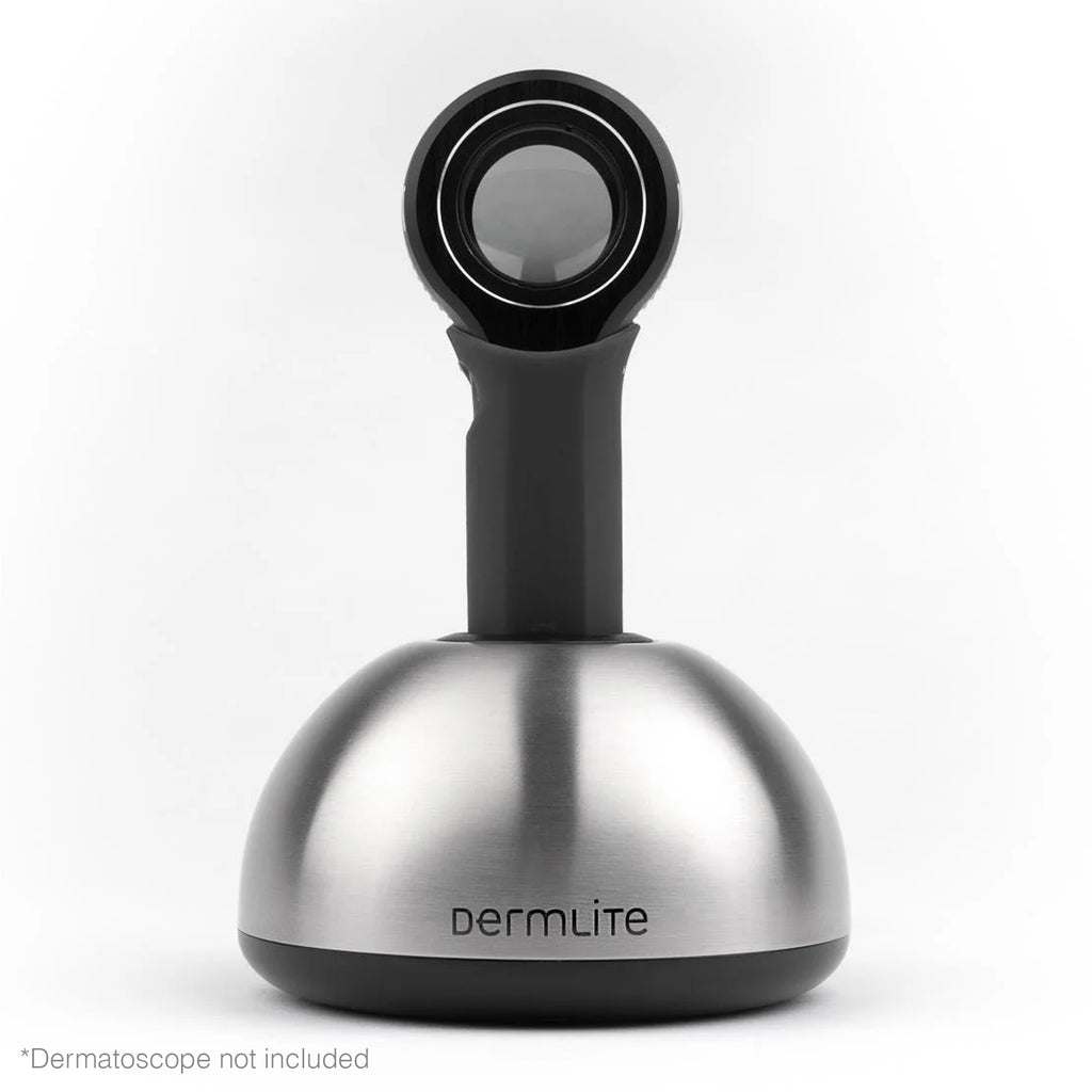 Crafted from sleek stainless steel, the DL4 Charging Base offers a dependable and stylish resting place for your dermatoscope when not in use. Simply place your DL4—whether or not it’s in its silicone sleeve—into the base, and you’ll always know where it is. Compatible with DermLite® DL4™ and DL4W™ models