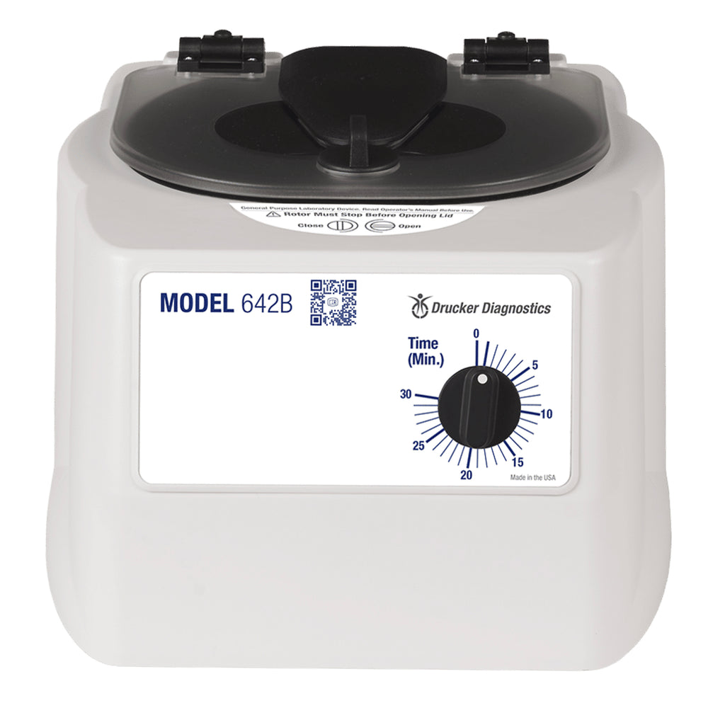 The Model 642B is Drucker Diagnostics’ most cost-effective horizontal centrifuge. Pre-set to 1600 xg, it features Drucker’s patented horizontal rotor, durable engineered materials, and an advanced cooling system to deliver consistent, high-quality sample separations through transport and analysis