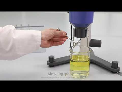The motorized IKA HELISTAND moves the mounted viscometer and its rotating body slowly and uniformly up and down in the sample.
