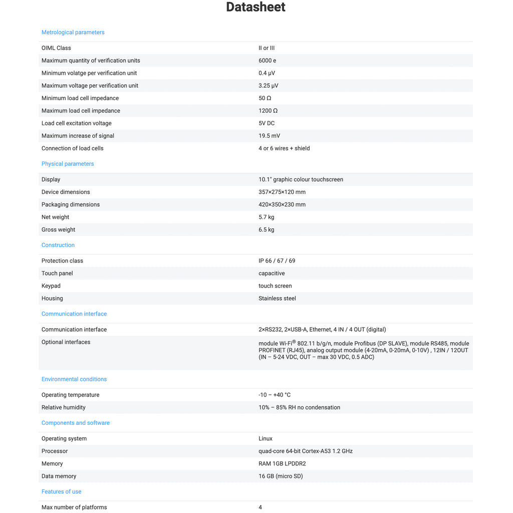 The Radwag® HY10 is a high-performance stainless steel weighing terminal designed for industrial load cell scales. Built to withstand harsh environments, it features an IP68/69-rated housing, a 10.1” capacitive touchscreen with 1024x600 resolution, and intuitive operation. It supports one platform by default and up to four with optional modules.