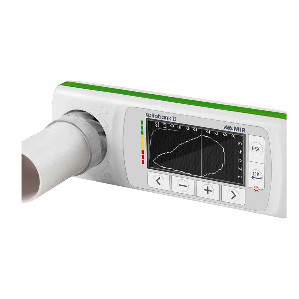 The Spirobank II BASIC is a portable spirometer that operates both as a standalone device and when connected to a PC via USB cable. Easy to use, it is the perfect spirometer for pediatricians, general practitioners, sports physicians, and screening purposes. This spirometer provides real-time display of spirometric test results directly on its screen and on a PC using the MIR Spiro™ Software