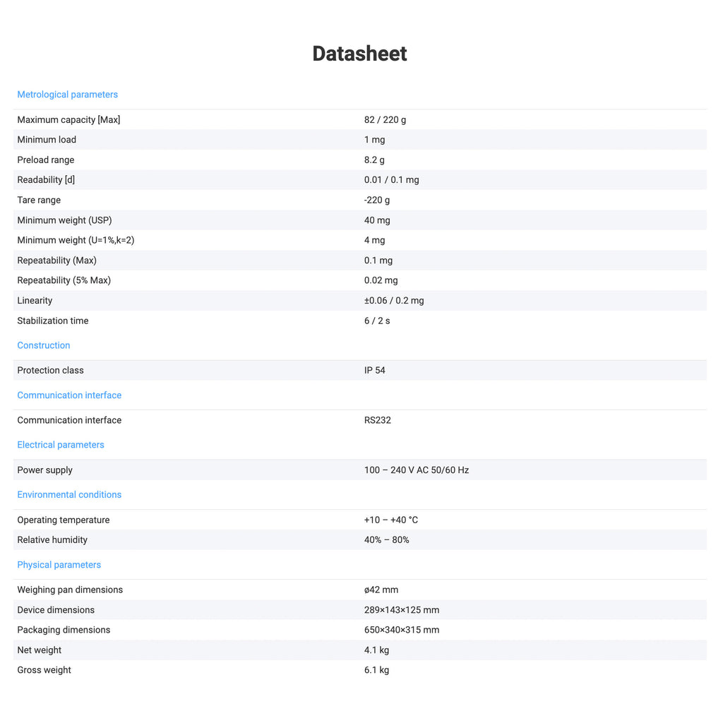 Radwag® MAS 1.82/220 Product Spec. Sheet