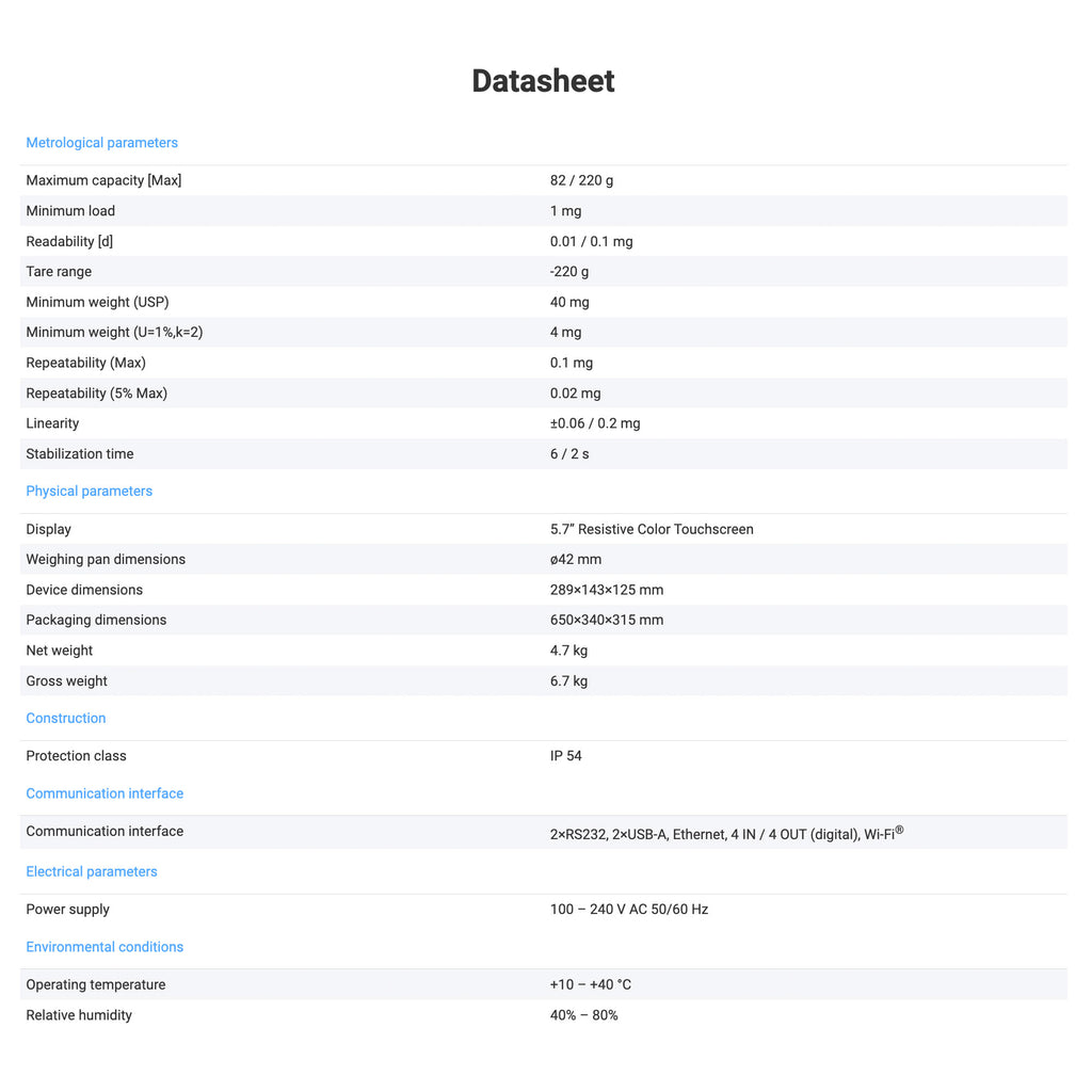 Radwag® MAS 82/220.Y Weighing Module, 82/220g x 0.01/0.1mg, Resistive Color Touch Display, WX-016-0166