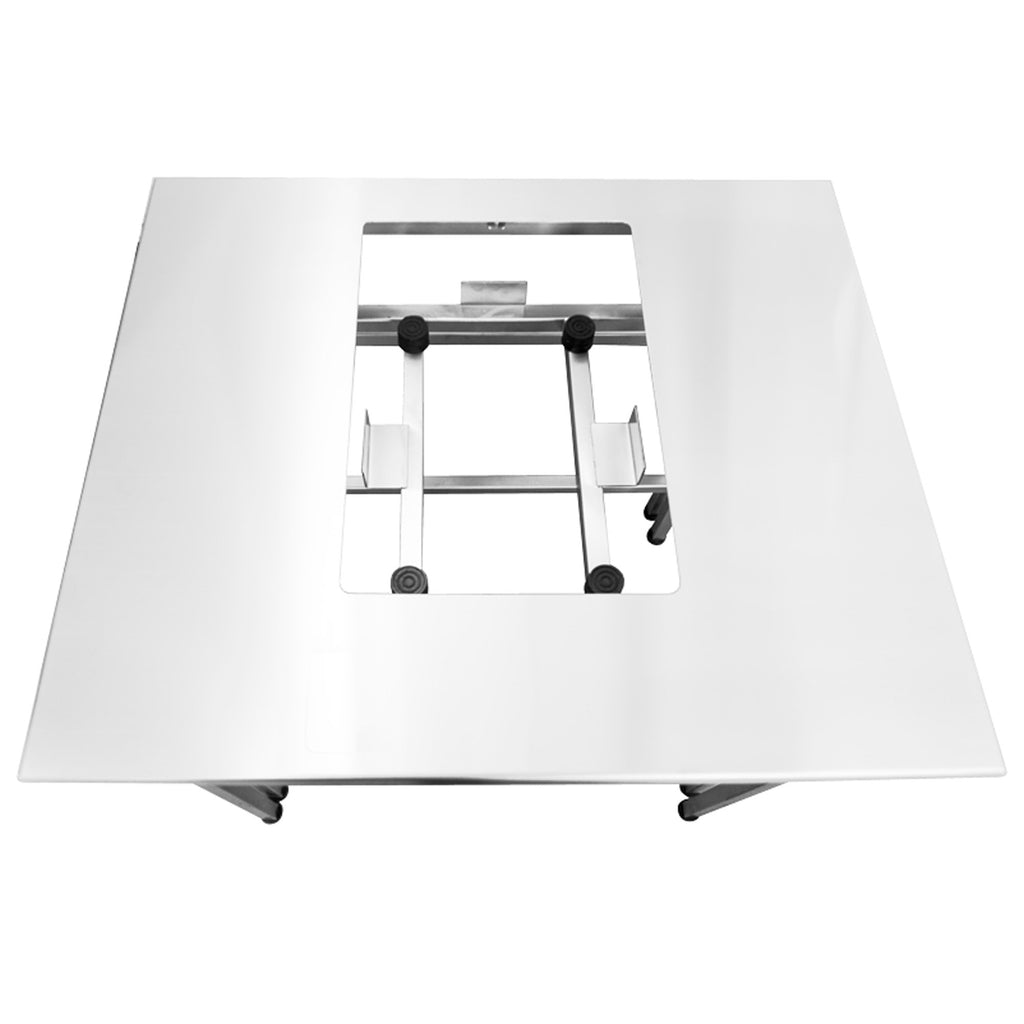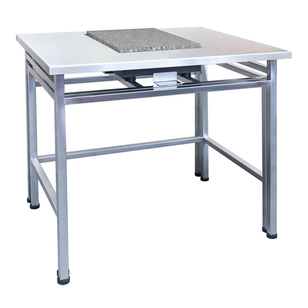 The Radwag® SAL/H/PLUS Antivibration Table (WX-001-0155) is designed to eliminate floor vibrations during PLUS series lab balance operations. It features a dual-structure design with a central stone top, vibration damper, and adjustable feet with rubber tips for levelling. Both the frame and tabletop are made of acid-resistant stainless steel.