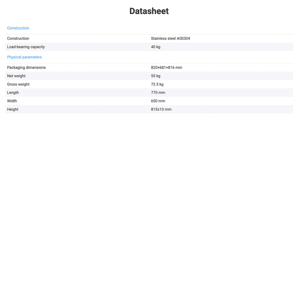 WX-001-0077 SAL/H 77 x 67 x 81.5cm Stainless steel AISI304