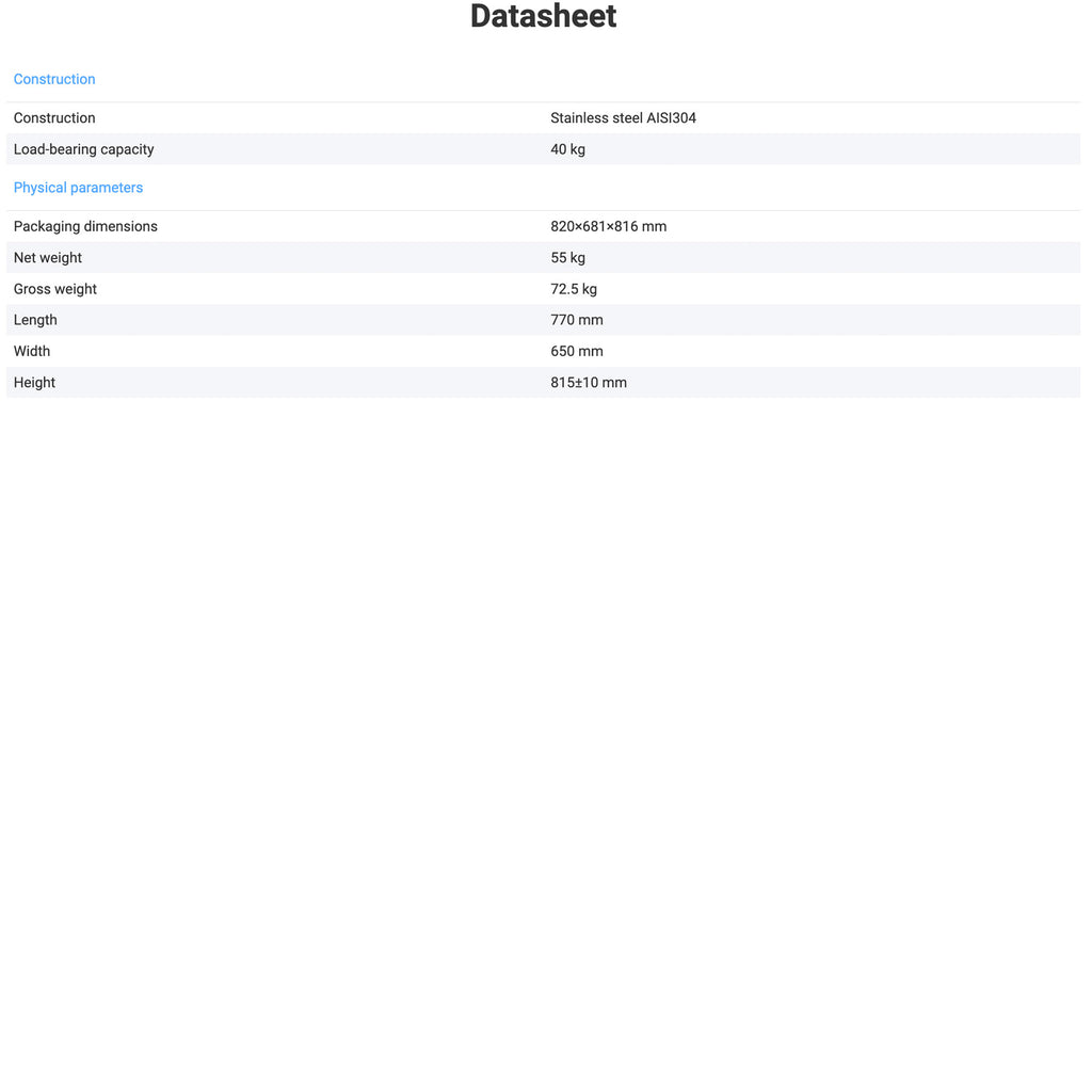 WX-001-0077 SAL/H 77 x 67 x 81.5cm Stainless steel AISI304